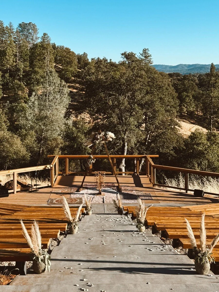Nestled on 132 woodland acres in the Sierra Nevada foothills, Deloro Valley offers a stunning landscape with indoor and outdoor spaces for events of all sizes, including amphitheaters, dining halls, commercial kitchens, a pool, on-site lodging, and breathtaking views.